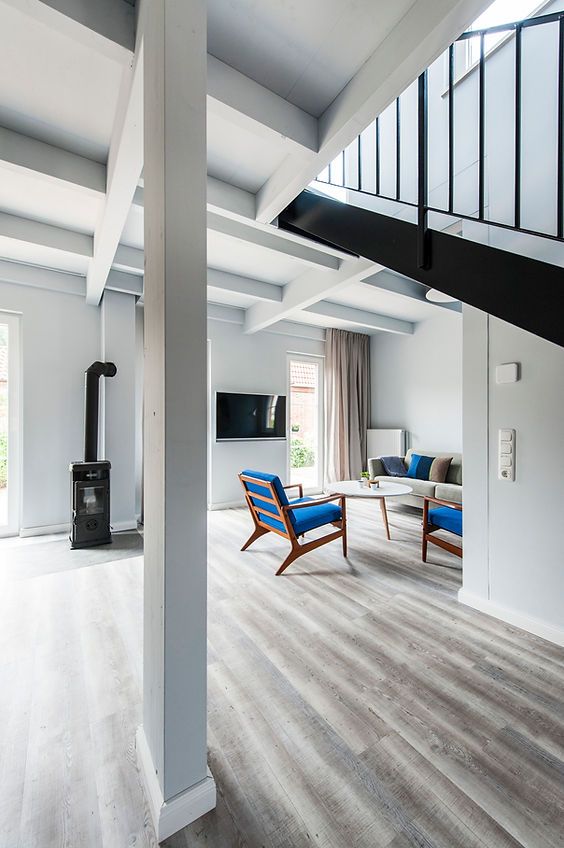 offene Strukturen, hochwertige Holzverkleidungen, elegante Treppen oder integrierte Stauraumlösungen. - Küche & Bad: